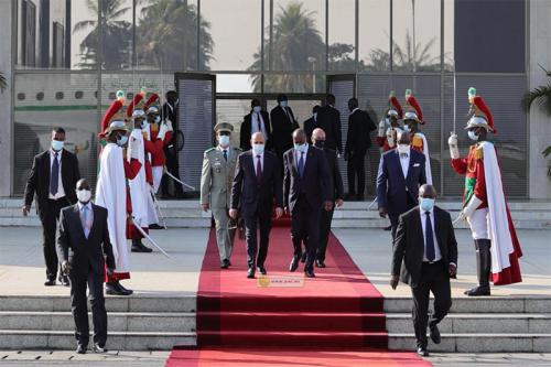 وقد غادر الرئيس أبيدجان باتجاه كوناكري مرفوقا بوزير الشؤون الخاريجة والتعاون والموريتانيين في الخارج إسماعيل ولد الشيخ أحمد، والمكلفين بمهمة بالرئاسة محمد الأمين ولد آبي ولد الشيخ الحضرمي، والحسن ولد زين، إضافة لمدير تشريفات الدولة الحسن ولد أحمد.