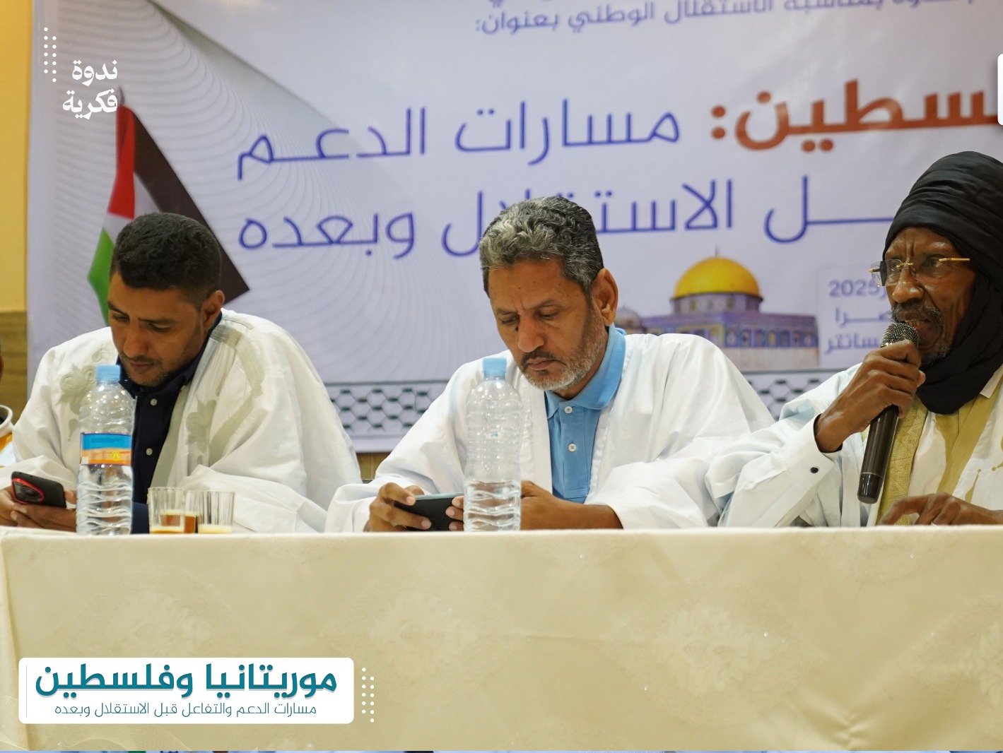 نظم الرباط الوطني لنصرة الشعب الفلسطيني مساء الاثنين ندوة بعنوان: "موريتانيا وفلسطين مسارات الدعم والتفاعل قبل الاستقلال وبعده" تناولت تاريخ الوعي الشعبي الموريتاني بالقضية الفلسطينية ونصرتها سياسيا وشعبيا، وذلك بمناسبة الذكرى 65 لعيد الاستقلال الوطني.