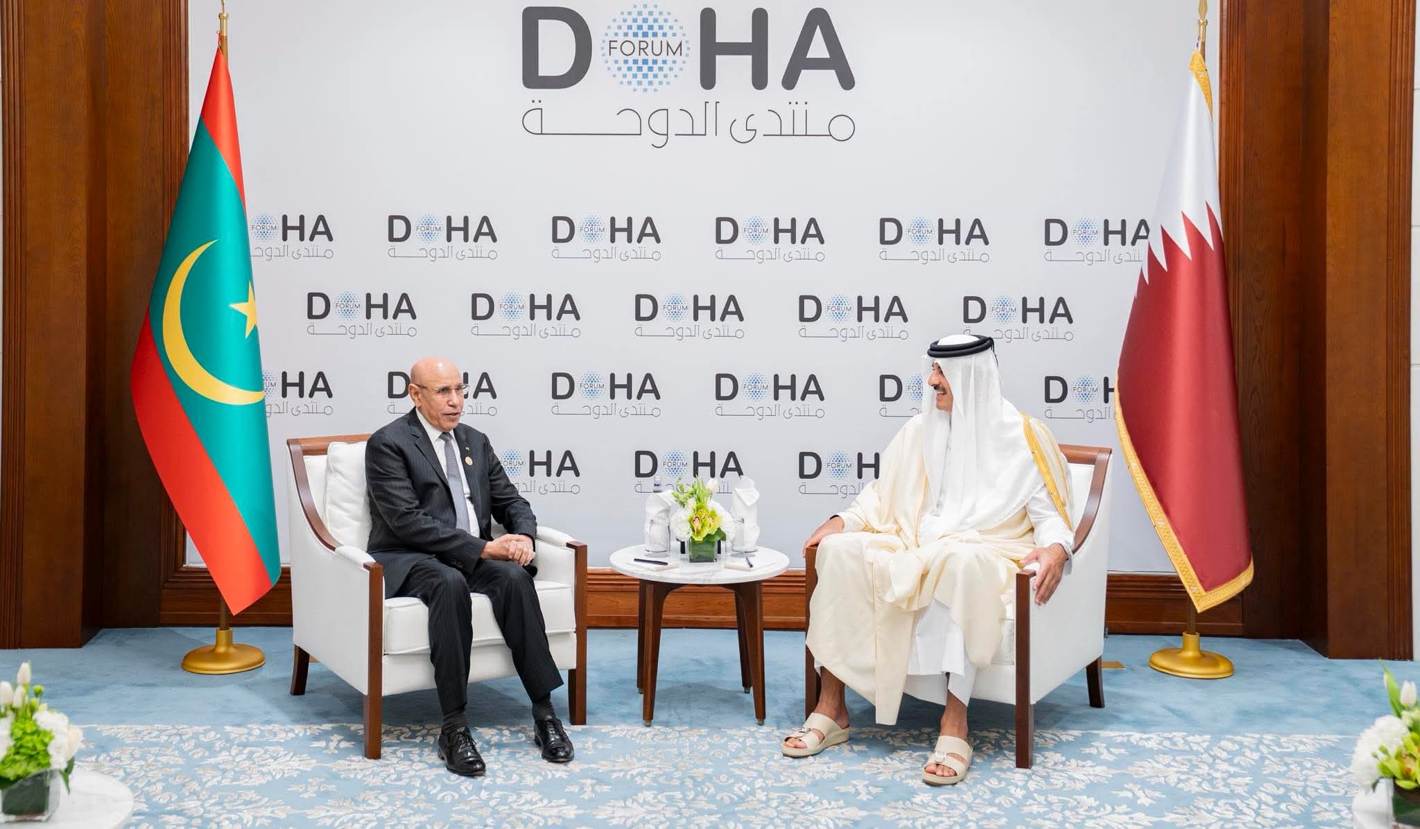 عقد الرئيس محمد ولد الشيخ الغزواني مباحثات مع أمير دولة قطر، الشيخ تميم بن حمد آل ثاني، وذلك على هامش مشاركته في منتدى الدوحة.
