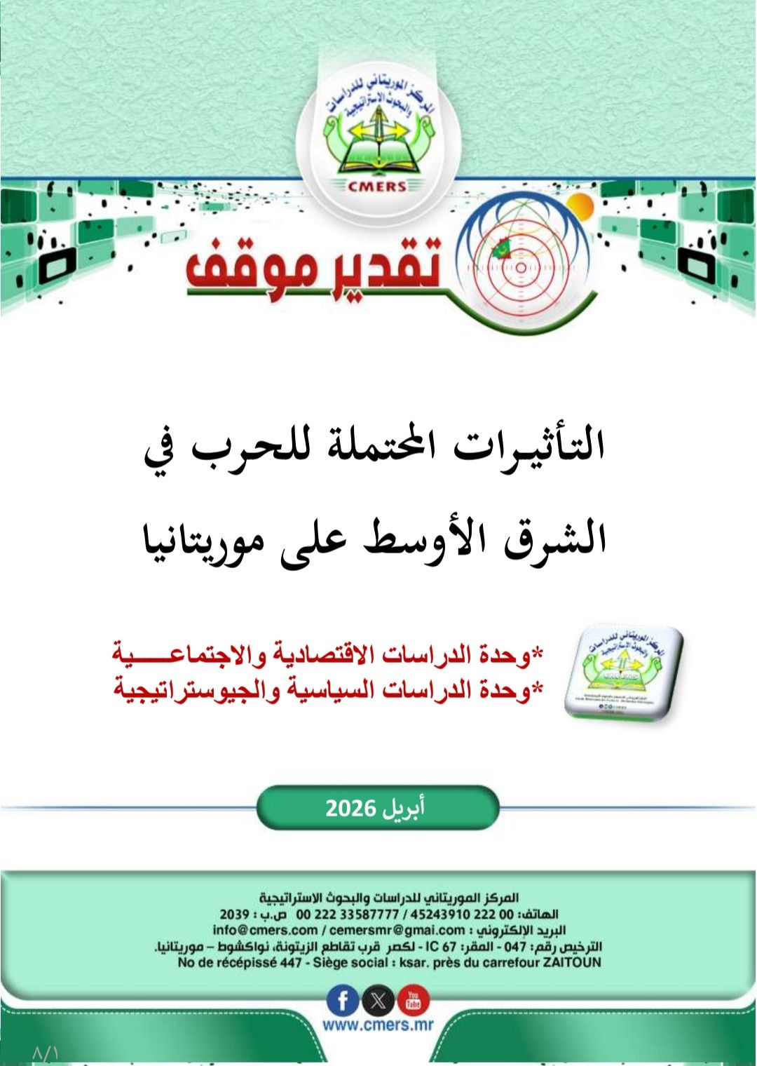 ويؤكدالتقرير إلى أن موريتانيا، رغم بعدها الجغرافي عن بؤرة الصراع، ليست بمنأى عن تداعياته، بل تواجه اختباراً حقيقيا لقدرتها على امتصاص الصدمات الخارجية، في ظل اقتصاد هش يعتمد بشكل كبير على الأسواق العالمية.