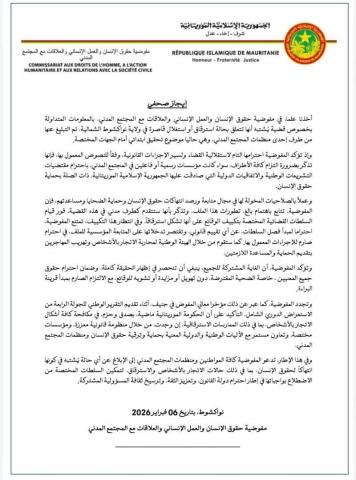 أعلنت مفوضية حقوق الإنسان والعمل الإنساني والعلاقات مع المجتمع المدني في موريتانيا، عن بدئها متابعة مؤسسية دقيقة لقضية يُشتبه في تعلقها بحالة استرقاق أو استغلال لقاصرة في ولاية نواكشوط الشمالية، وهي القضية التي تخضع حال