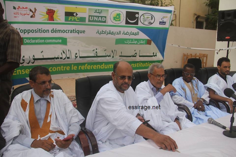 نظمت تنسيقية المعارضة الديموقرطية التي تضم كلا من المنتدى والتكتل والوطن والصواب وإيرا والقوى التقدمية للتغيير ومحال تغيير الدستور و"إيناد" مساء اليوم الثلاثاء 25 يوليو 2017 ندوة صحفية بمقر حزب التكتل في انواكشوط، بينت فيها خطتها النهائية لإسقاط التعديل الدستوري وتحدثت فيها عن "ثورة هادئة".