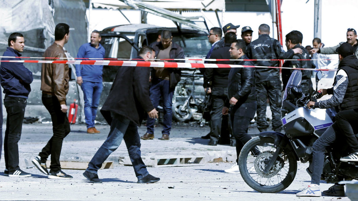 وأوضحت وزارة الداخلية التونسية، أن المهاجمين فجرا نفسيهما، مستهدفين دورية أمن بالقرب من مبنى السفارة الأمريكية، مضيفة أن التفجير خلف مقتلهما، وجرح 5 أمنيين ومدني.