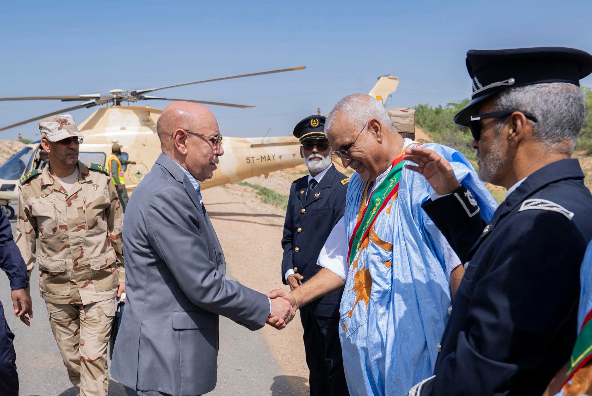 أشرف الرئيس محمد ولد الشيخ الغزواني صباح اليوم الاثنين في مقاطعة كرمسين على تدشين منشأة لإزالة الطمي في بني نعجي.