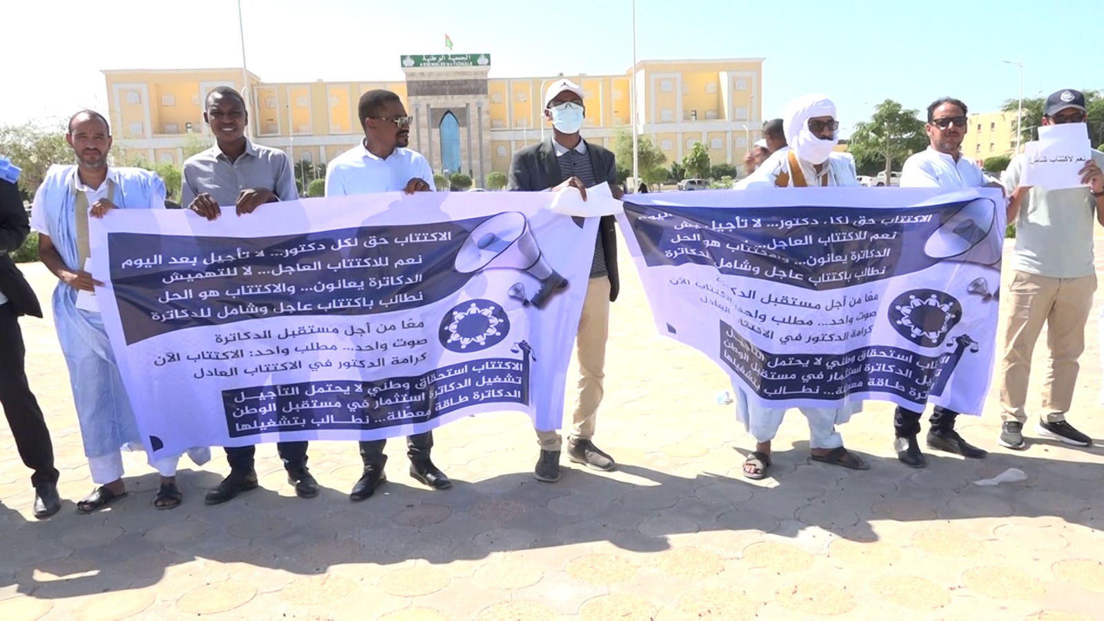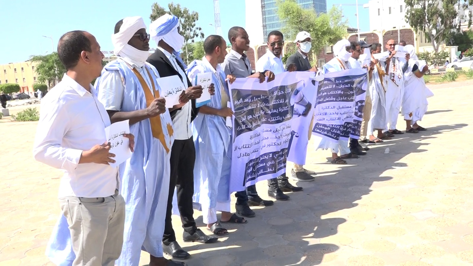 احتج عدد من الدكاترة المتعاونين مع مؤسسات التعليم العالي، اليوم، صباح اليوم الثلاثاء أمام القصر الرئاسي في نواكشوط، حيث طالبوا بإطلاق اكتتاب شامل وشفاف يلبي حاجات مؤسسات التعليم العالي من الأساتذة والباحثين.