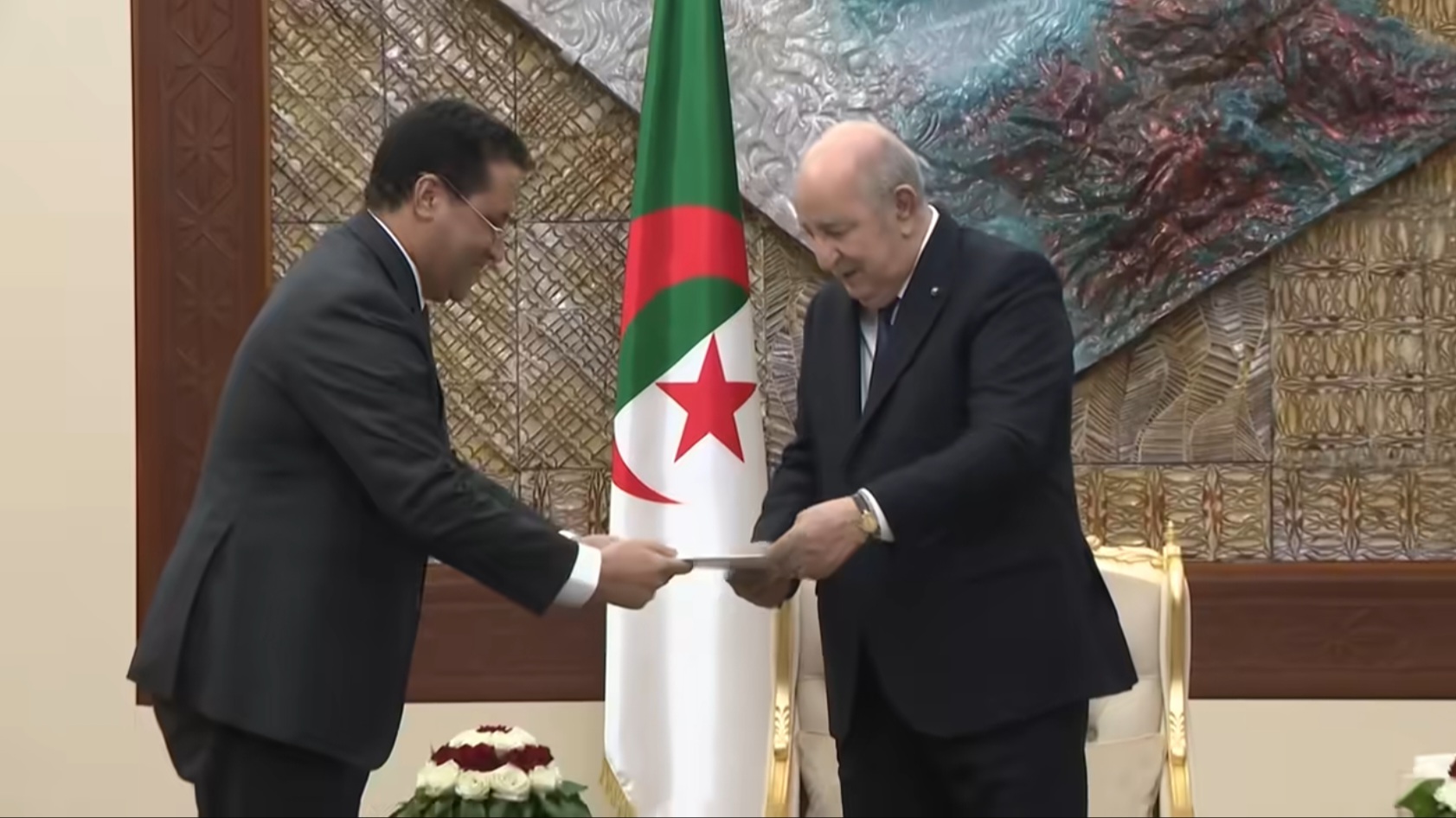 سلّم الوزير الأول المختار ولد أجاي، الرئيس الجزائري، عبد المجيد تبون، رسالة خطية من الرئيس محمد ولد الشيخ الغزواني.