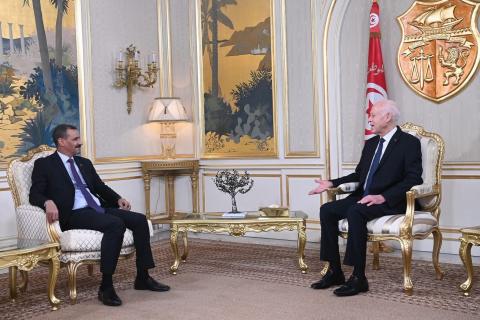 استقبل رئيس تونس قيس سعيّد، الجمعة بالقصر الرئاسي بقرطاج، وزير الثقافة والفنون والاتصال والعلاقات مع البرلمان الناطق باسم الحكومة، الحسين ولد مدو، الذي يزور تونس بصفته مبعوثًا خاصًا، حاملاً رسالة خطية من رئيس موريتانيا
